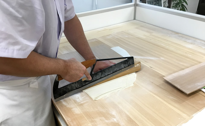 私が打っているそばは、十割手打ちの小麦粉などのつなぎと言われる物は入っておりません。きれいな白い粉とお湯と水だけで仕上げます。麺となったそばは、茹でられてよく水で洗い、冷水をくぐらすと何とも艶やかなきれいなそばができあがります。